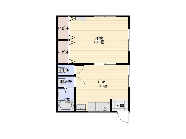 | 詳細間取 | 1LDK (洋10帖×1、LDK8.5帖) | ||